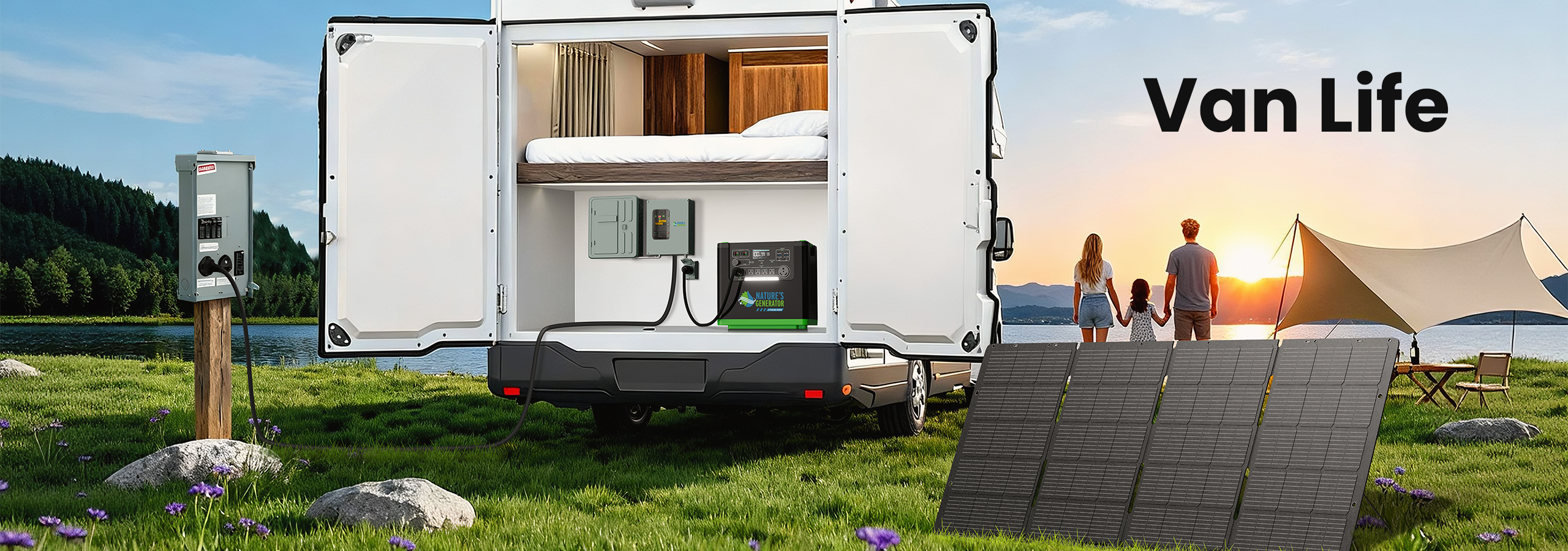 With its 3840Wh LiFePO₄ battery capacity and 6000 W continuous pure sine wave output, the Nature’s Generator Lithium 6000 delivers dependable power for your van life setup. Easily run fridges, induction cooktops, lighting, and other essentials while enjoying the freedom to live off-grid. Its fast-charging capability ensures you stay on the move longer without compromising comfort or convenience.