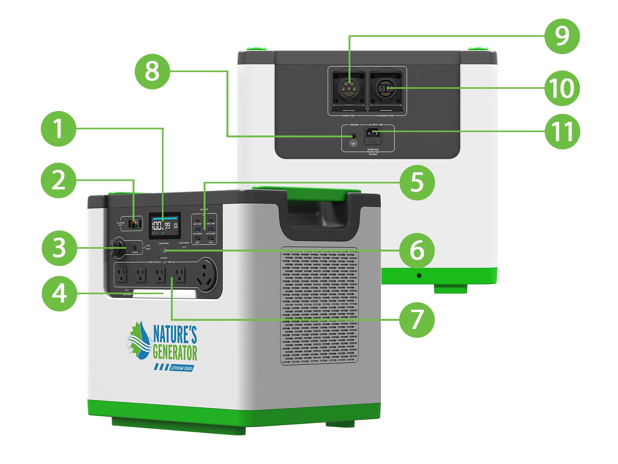 Easily scale your system by adding another Lithium 3600 for 7200W/240V power, or extra battery units for more capacity.