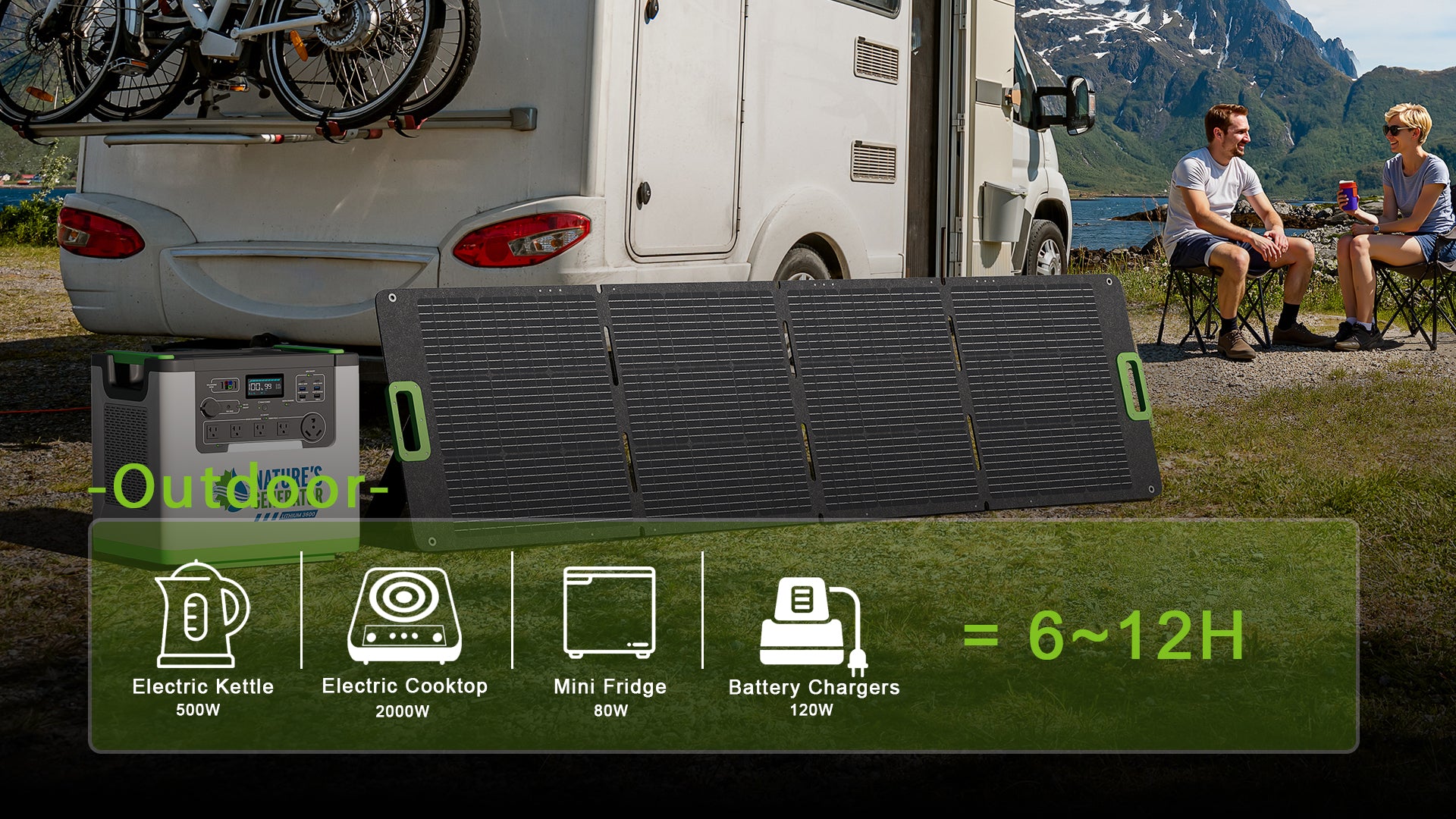Delivers 3600W of reliable power for home backup, RVs, off-grid setups, and outdoor use.