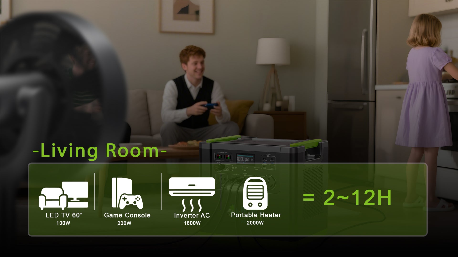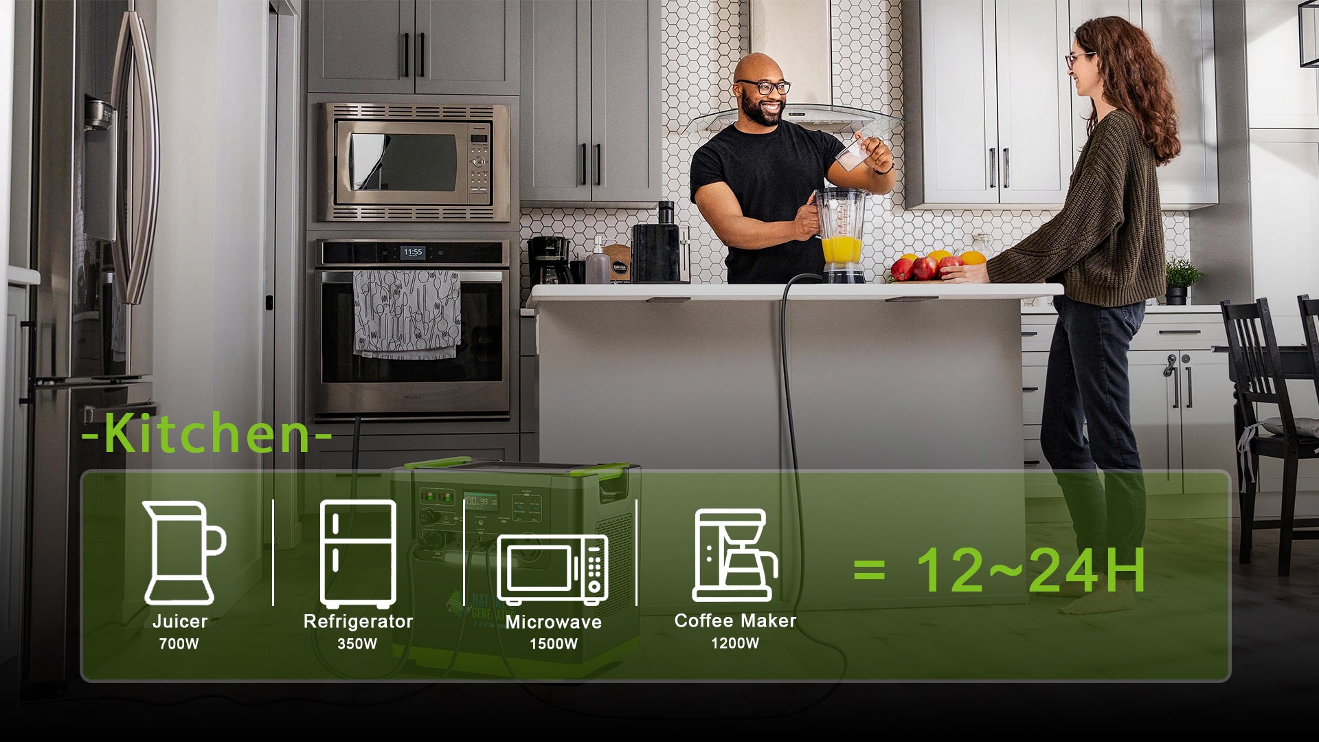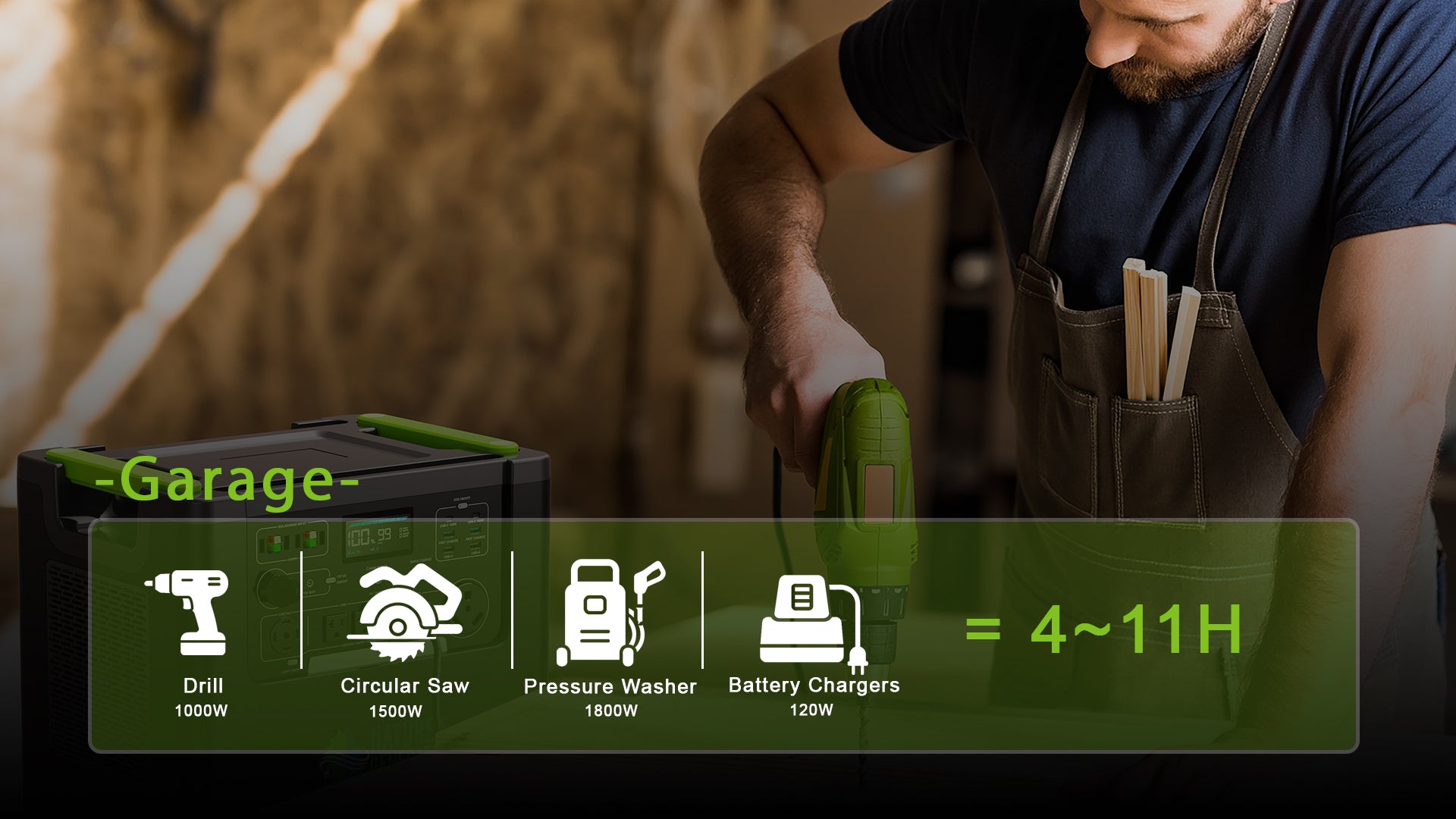 Versatile Charging Options: Supports 2400W solar, 150W wind, and 3000W AC charging, making it a versatile home backup power solution for any location or situation. 80% charge in approximately 1.2 hours, minimizing downtime.