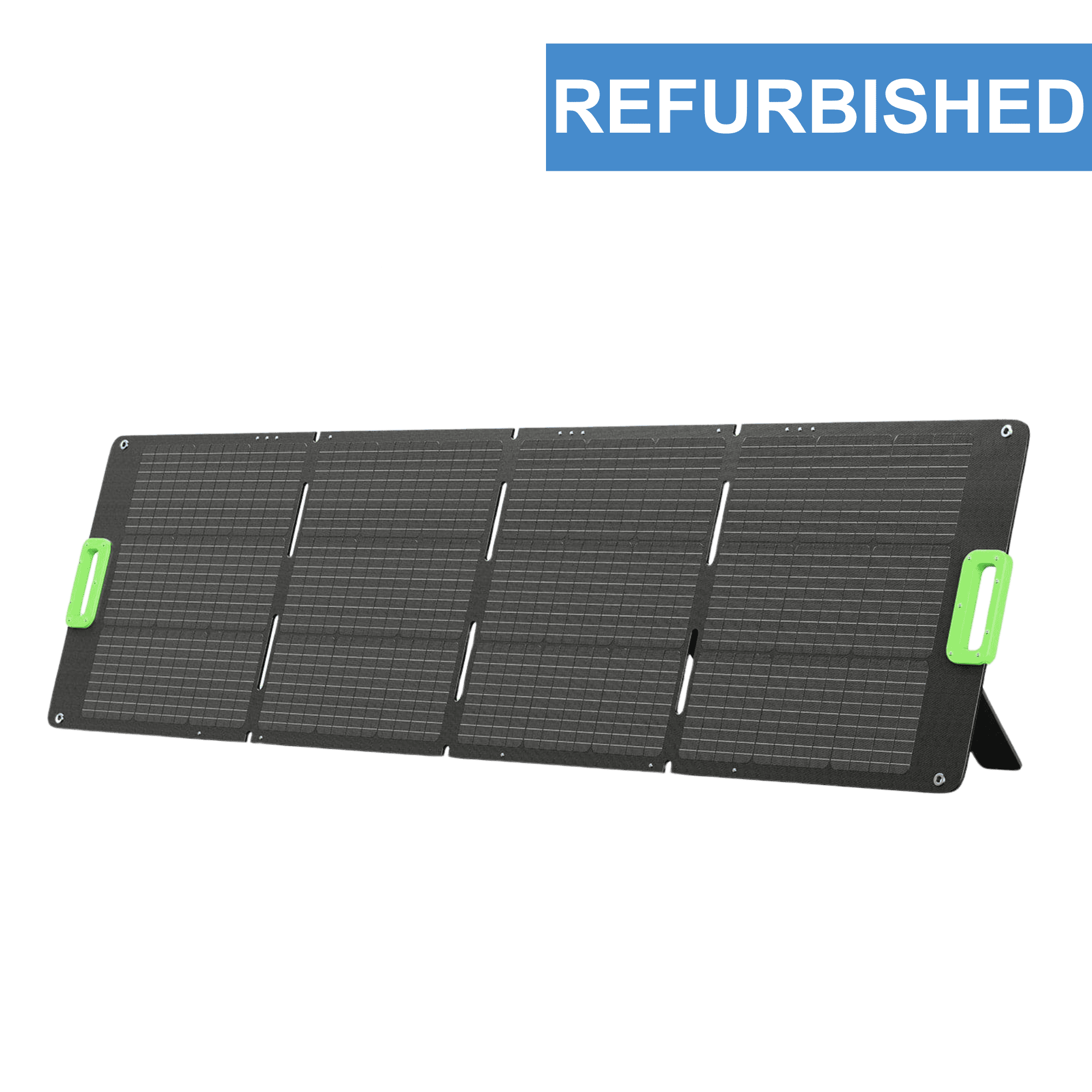 •Portable solar power on demand: Delivers up to 200 W of solar output, ideal for charging compatible power stations and supporting light off-grid, RV, or camping energy needs. •High-efficiency monocrystalline cells: Uses advanced monocrystalline solar technology to maximize energy conversion and maintain reliable performance in varied sunlight conditions. •Durable, outdoor-ready construction: Designed with a rugged, outdoor-ready build and Ethylene Tetrafluoroethylene (ETFE) coating to enhance longevity and withstand environmental conditions during camping, RV trips, or outdoor use. •Foldable, light, compact design: Folds into a slim, lightweight, and easy-to-handle form factor for convenient transport, setup, and storage without extra accessories. •Built-in kickstands for quick setup: Integrated kickstand supports allow fast deployment and easy angle adjustment for optimal sun exposure—no additional stands or hardware required.